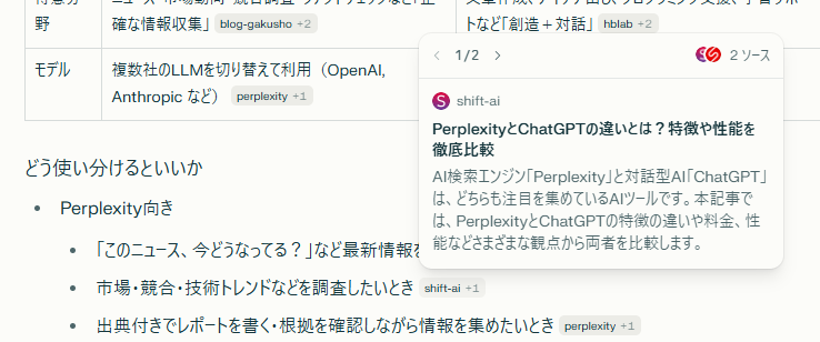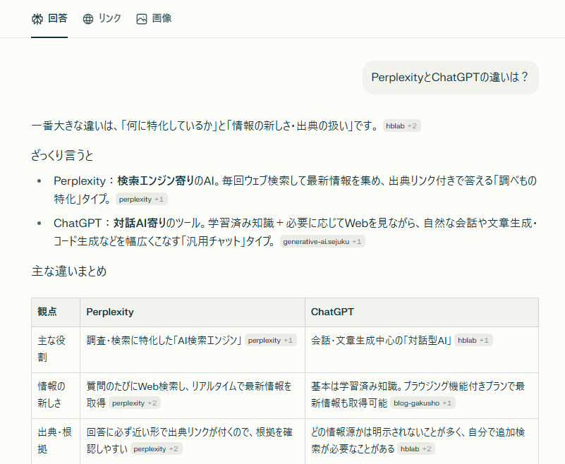 Perplexityの回答には、必ず参照元のリンクが表示されます。